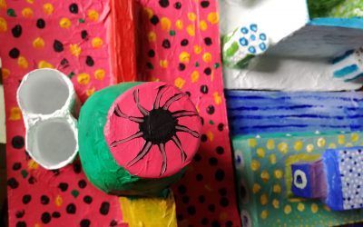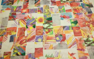 We have been experimenting with colour and mark making, and created this beautiful group piece for CAMHS.